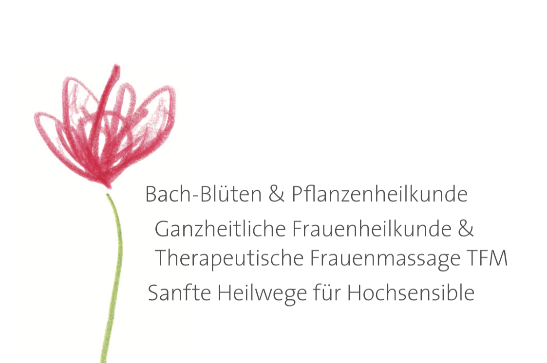 Bachblüten und ganzheitliche Frauenheilkunde auf einer Visitenkarte mit selbstgemalter Blume von Frau Weber