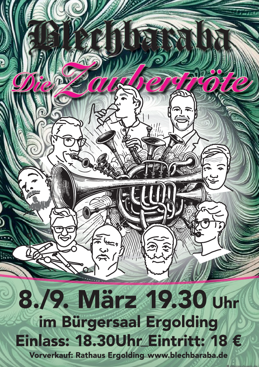 Veranstaltungsflyer mit Kapellenlogo und Illustration